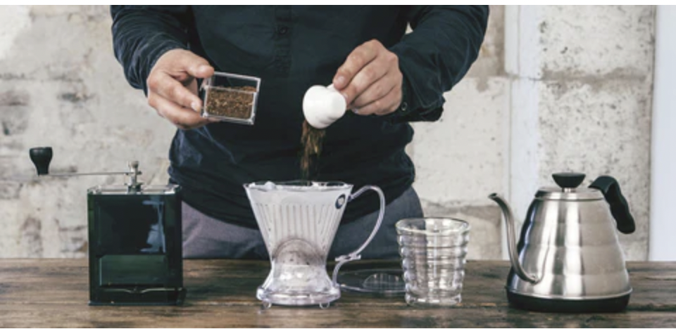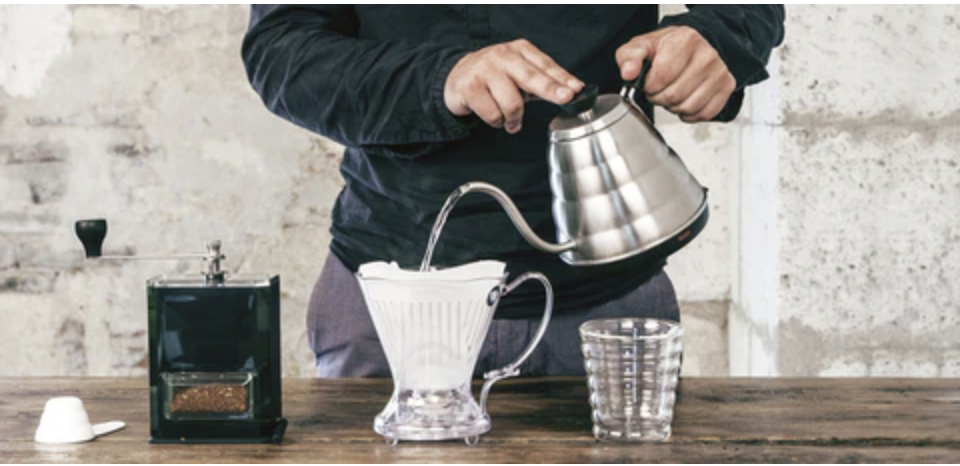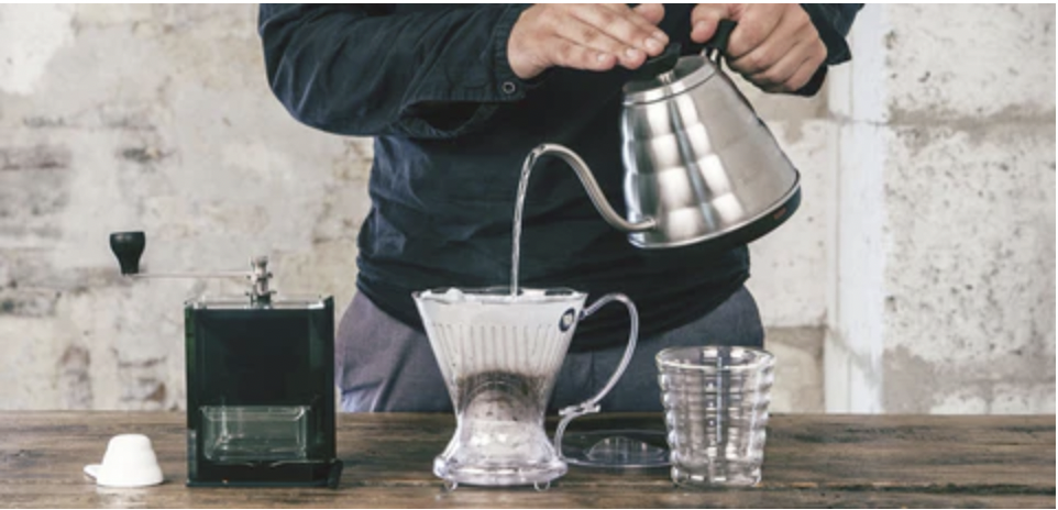 Si vous avez lu l'article “comment utiliser une cafetière V60”, vous connaissez. Si pas, la méthode d'infusion douce V60, qui s'applique aussi pour le Clever Dripper, consiste à filtrer son café de manière douce et lente grâce à un kit qui comprend un porte-filtre, aussi appelé dripper, une carafe et un filtre. Le café moulu est versé dans le filtre qui est ensuite humidifié avec de l’eau chaude. Le café commence alors à s’écouler dans la carafe se trouvant en dessous du filtre.